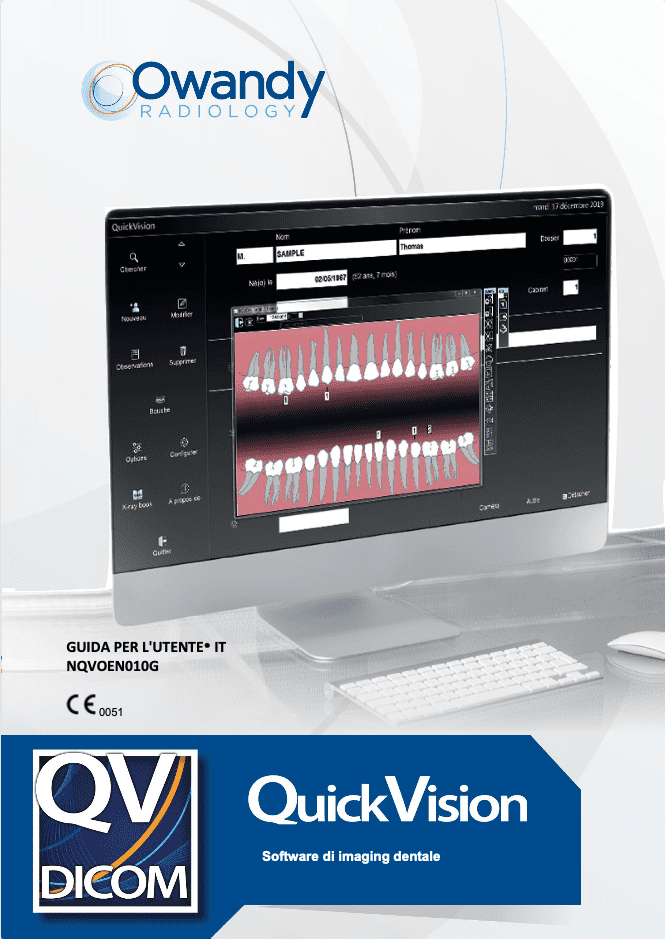 Il software di imaging QuickVision è destinato agli studi dentistici e include un database dei pazienti, un modulo di imaging e uno schema dentale.